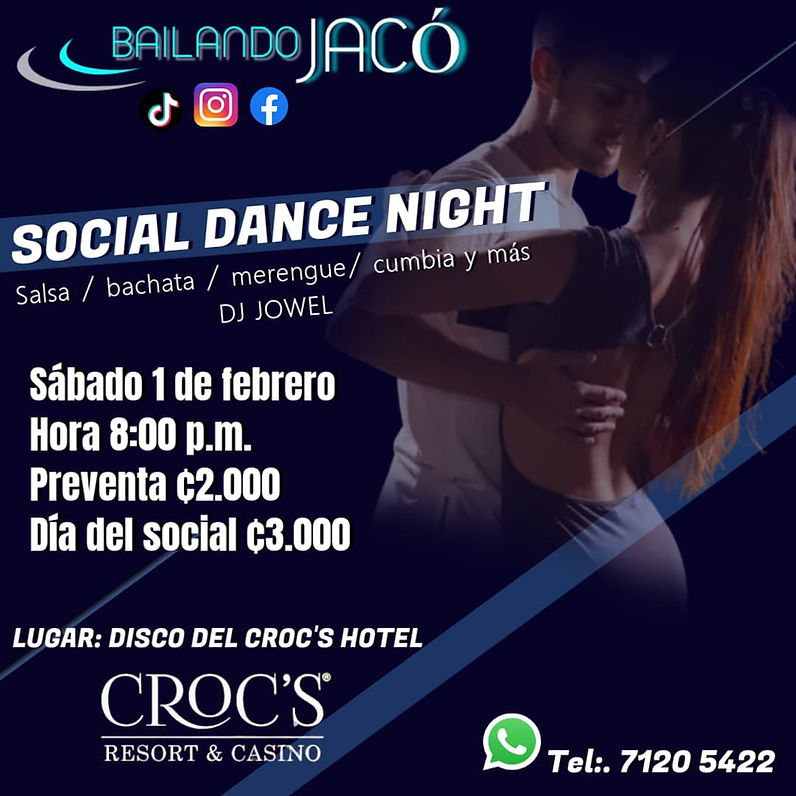 Mark your calendars for an unforgettable evening of dance on February 1st and 15th, from 8 PM to 12 midnight, at Loft Nightlife, nestled inside the Crocs Resort & Casino. This is your chance to enjoy a night filled with Salsa, Bachata, Merengue, Cumbia, and more. Whether you’re a seasoned dancer or a beginner, Bailando JACO instructors are ready to guide you on the dance floor.